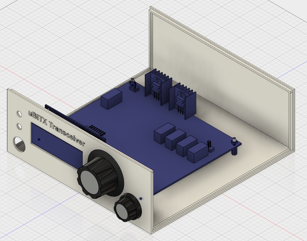 After modeling component parts of the uBITX radio circuit boards, LCDs,